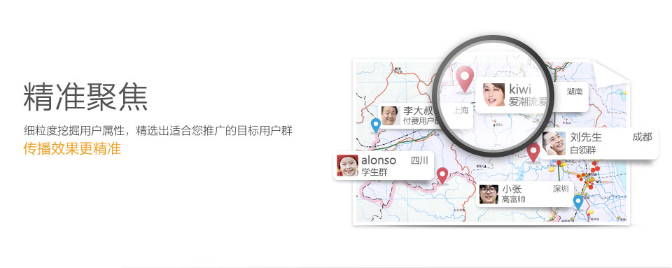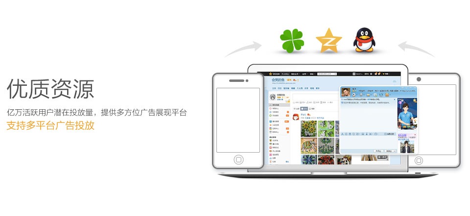 基于腾讯大社交网络体系广告平台,广告主可以在QQ空间、QQ客户端、手机QQ空间、手机QQ、微信、QQ音乐客户端、腾讯新 闻客户端等诸多平台投放广告,进行产品推广。作为主动型效果广告,腾讯广告能有效实现更加智能的广告匹配和高效的广告资源利用。广告形式包括Banner广告、插屏广告、开屏广告、应用墙、信息流广告等诸多种类。